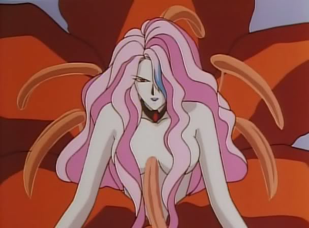 Fiore turns into MEGA FIORE by bonding with the stupid lower woman, and looks pretty much the same except that he has a gross arm wrapped around his shoulders.