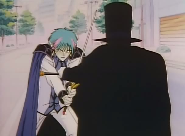 There’s some boring back and forth between Tuxedo Kamen and Fiore, before the Kisenian Flower seems to take control of the situation, and there’s a sword/cane fight.
