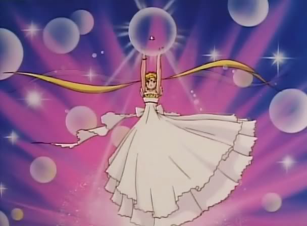 When Usagi opens her eyes at the exact moment of a musical cue, you know it’s the big finale. I like this moment. Usagi turns once more into Princess Serenity, and it looks like she means business.