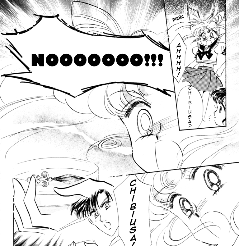 It’s a moment that makes Chibi-Usa seem utterly vulnerable, and seems to secure Mamoru’s devotion to her. It’s rather sweet, and makes more sense than in the anime.