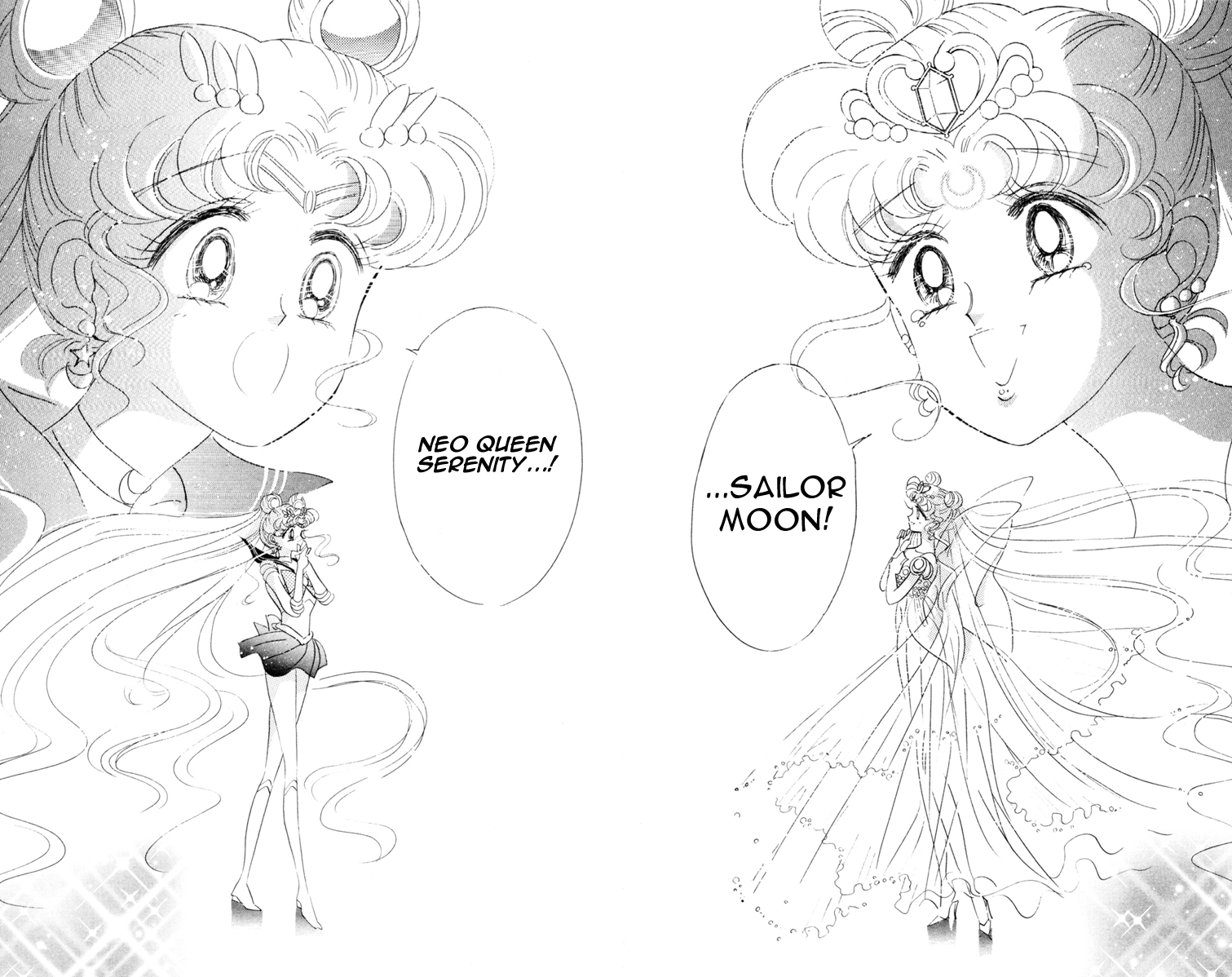 We have that reunion hug between Serenity and Chibi-Usa (well, Chibi-Moon now), but it lacks so much of the moment in the anime. The fight hasn’t ended, Serenity has apparently been an awful mother for aeons. It lacks that same pathos.