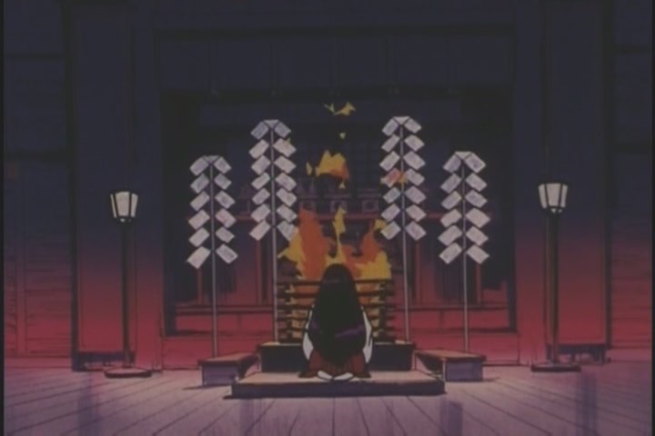 Mikuji rudely announces to Rei “I will have your pure heart that worries about your friends!” and Rei tries to run away from the shrine to lead the monster away from Grandpa.