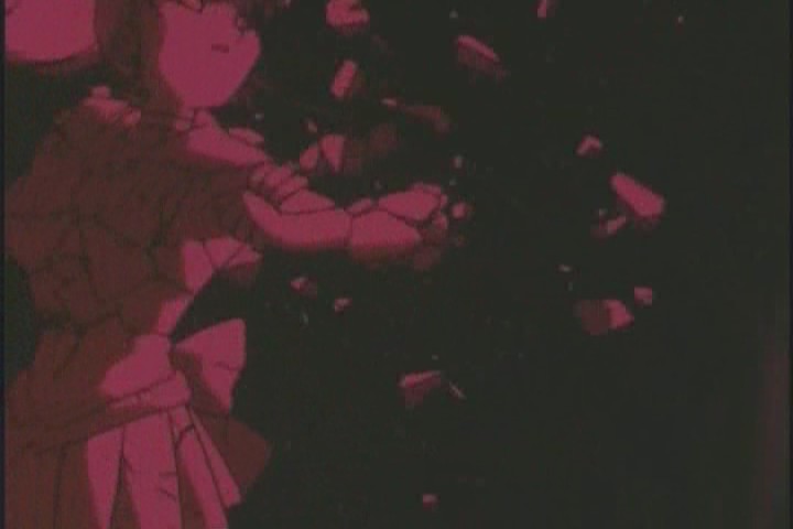 Against this is a wonderfully dark shot of the Sailor Senshi frozen in, like, some sort of red stone. It’s very creepy.