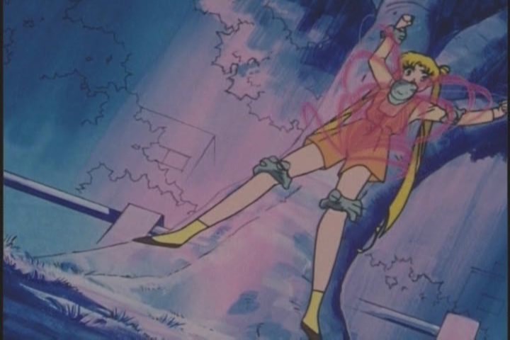 Sailor Moon gives her usual spiel against Mukuji, who pauses in her Pure Heart nabbing to attack. Naturally, Sailor Moon gets her ass kicked.