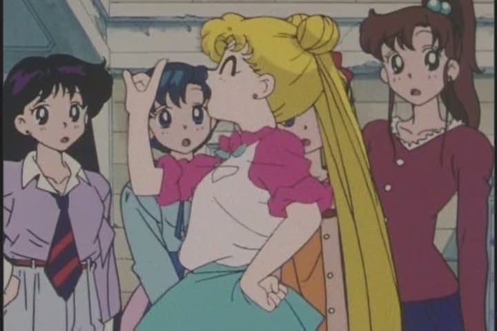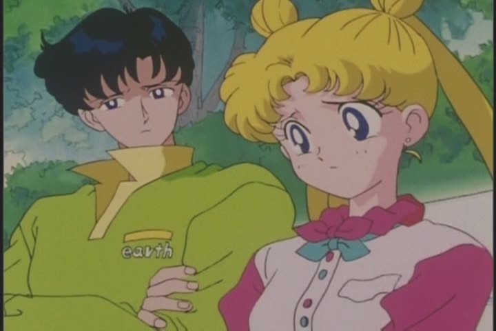 So Mamoru. What the fuck are you wearing? I gather that the subtle “earth” on his stupid shirt is a reference to the fact that he is the guardian of the Earth.