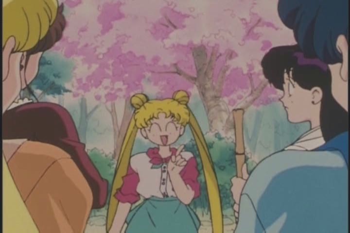 I love Usagi’s entrance. It’s just her shadow at first, in a typical Sailor Moon pose, until it’s revealed to be Usagi. A really cute moment by the animators.