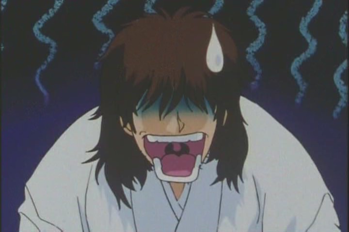 Worried by Rei’s long nights spent staring into the fire, hoping for an explanation of her troubling dreams, Yuichiro follows Rei, only to spot her flirting with a VERY handsome boy… who just so happens to be Haruka. Having left his brains in the washing machine, Yuichiro descends into a downward spiral of idiocy that culminates in him leaving the Hikawa Shrine… only to be attacked by a Daimohn.