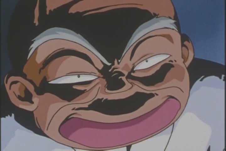 We next go to the Death Busters’ lab to see the Professor creating a new Daimohn Egg, and I love how weird this is. Today he’s rubbing it on his face and mumbling “Gloriaaa“. He should be in Hannibal.