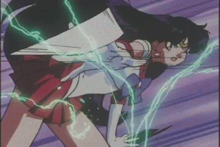Rei transforms into Sailor Mars and is ready to kick ass, but promptly gets her ass kicked as Koarinite takes the Pure Heart of Yuichiro and Toden starts whipping her about.