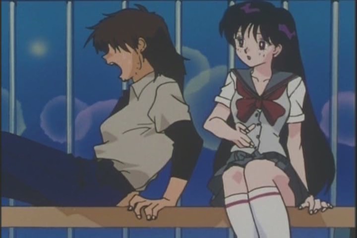 Usagi forces Rei to run after him anyway. Do these girls ever study?
