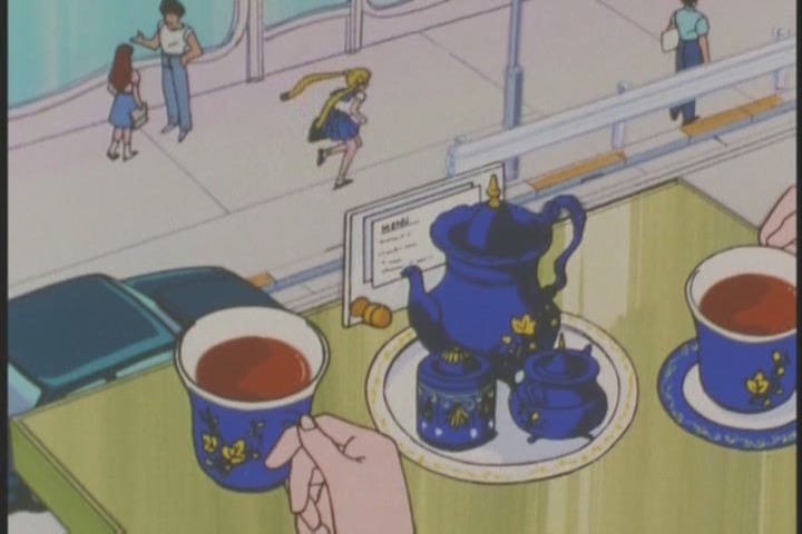 The episode continues to take its time, quietly lingering on rather nice, washed out shots of Tokyo, touching upon a fancy cafe (the china is fucking rancid, though) with Haruka and Michiru, before once again returning to Usagi.