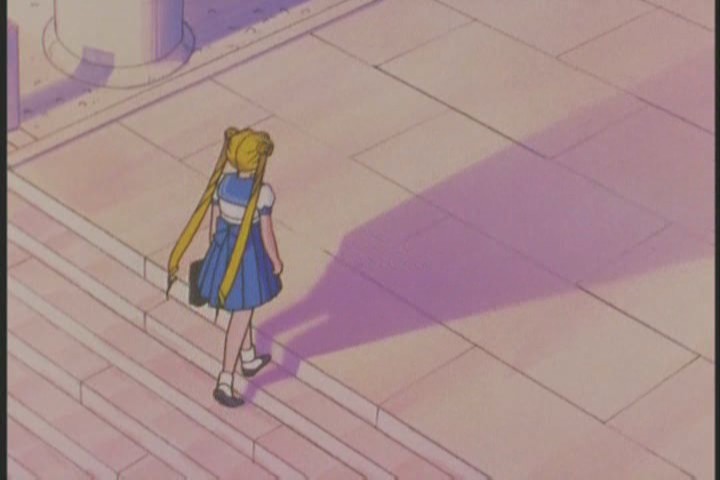 Turns out she still isn’t going to school. She sought out Mamoru like a cruise missile. It’s even taken her a long time to find him apparently. GO TO SCHOOL, FOR THE LOVE OF GOD.