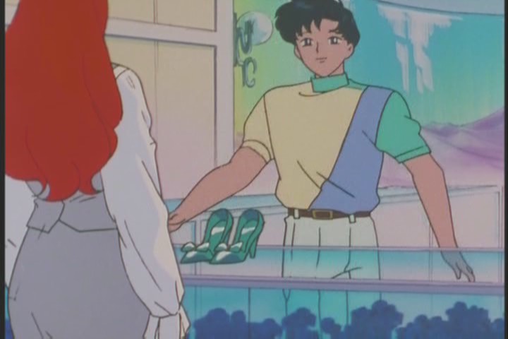 After getting chewed out by Rei for not knowing Usagi’s birthday, Mamoru looks rather relieved in the knowledge that he can solve the problem of his girlfriend being pissed off with the purchase of material goods.