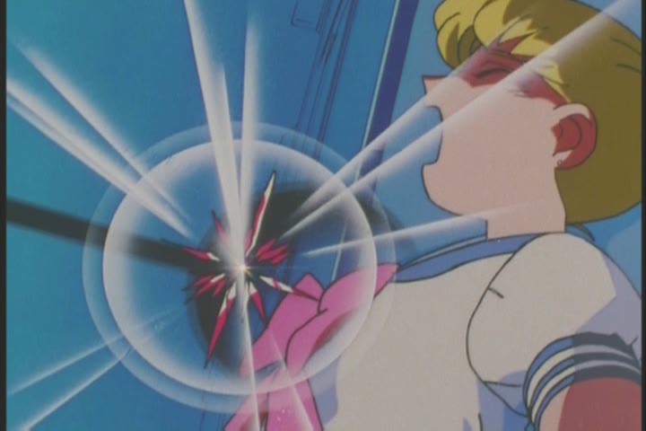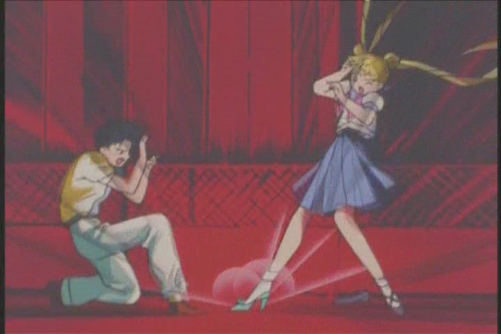 Usagi’s Pure Heart-ripping is as unpleasant to watch as the other girls’ in the series thus far. Her voice actress, Kotono Mitsuishi, is also accomplished at sounding overwhelmed with agony. Not nice to watch.