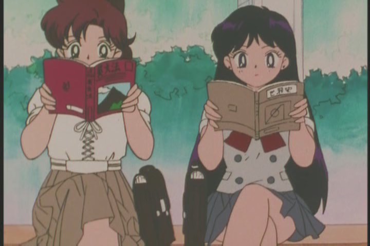 Usagi is acting very excited and cutesy, but the other Senshi aren’t able to muster up more energy than it takes to look over their textbooks. Nice, ladies.