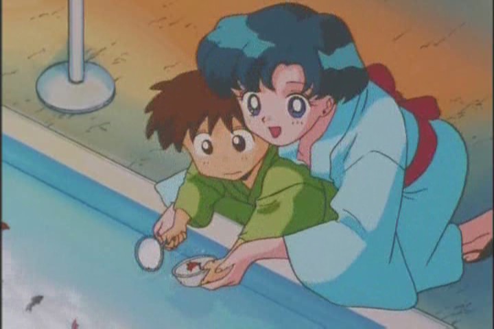 Usagi, deciding to follow the example (in the goldfish scoop, not… you know… in her sexuality. That we know of) moves over to the water trough… but something catches her eye…