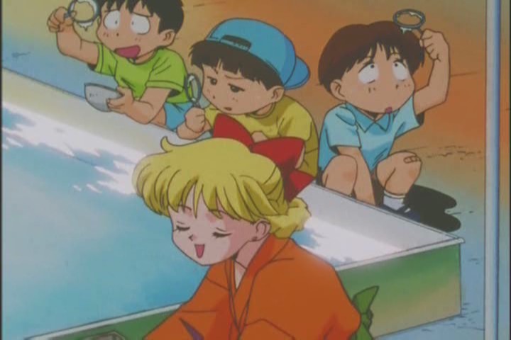 I love Makoto going off the edge entirely and interpreting Minako to mean that the unknown girl is actually a guy cross-dressing. I love Ami’s innocent little gasp and looking of intense but embarrassed curiosity.