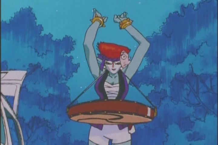 Eugeal now calls out the Daimohn from a case in the back of her station wagon. It’s much less dramatic than the usual reveal of them bursting from an inanimate object, which is a shame.