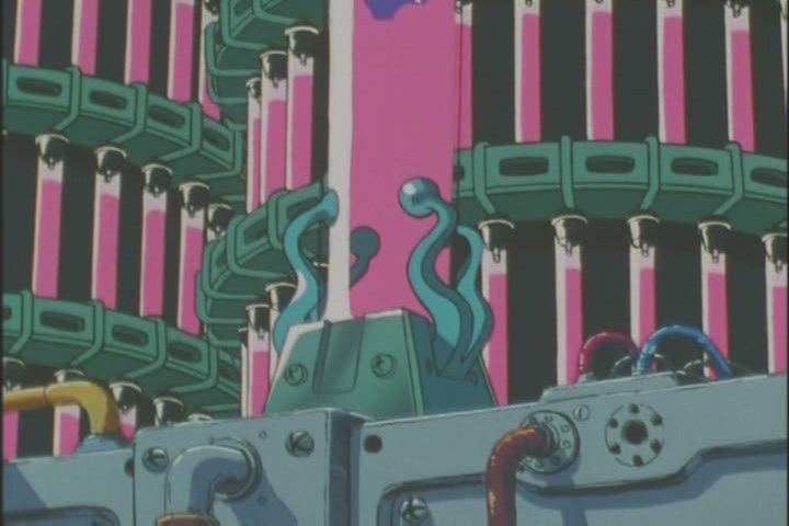 The Daimohns are obscurely formed inside a “Daimohn Oven”, which has an awesome sequence, full of whirring parts, alarms, capacitors and satisfying billowing pink smoke. It’s very cool, and very cyberpunk.