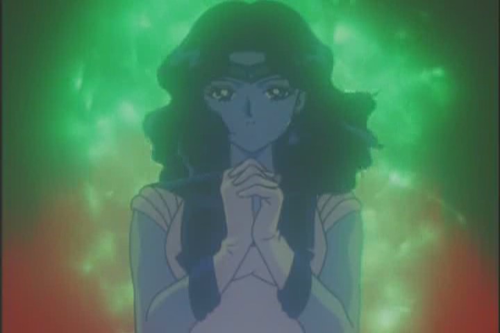 Michiru, displaying a level of affection for Haruka in warning her against the pen, and a level of trust by transforming into Sailor Neptune in front of her, is quite a bit more reckless than we’re used to. That’s love for ya.