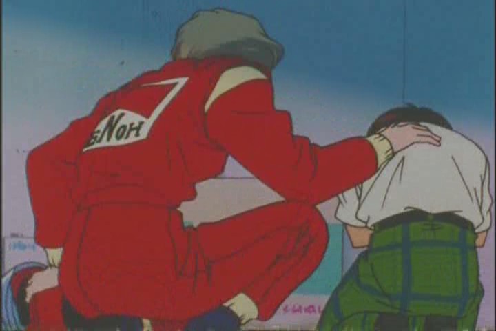 Sometime later (one of those hard to define transitions), Haruka is by the track, when she hears something rather worrying from a garage. She enters to find…