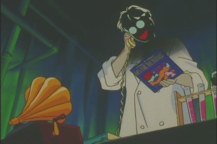 Poor Eugeal has another interruption to deal with, the Inner Senshi turn up all mouthy today. Man, everyone just wants to talk talk talk. Eugeal sets Chiquon (actually her dress is rather nice) on the Senshi, before getting the hell out of there.