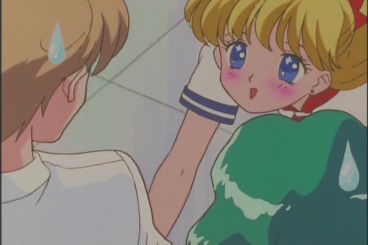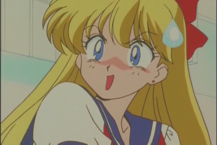There’s a long dramatic moment where Minako, looking incredibly serious, turns to Usagi with what looks like an important request.