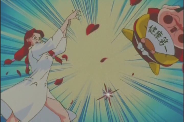 Doorknobudaa attacks Sailor Moon with a “Door Knob Reluctance Attack!” where she just sorts of runs into her… and of course, it works, since Sailor Moon is even more shit at combat.