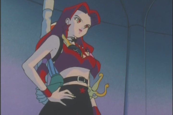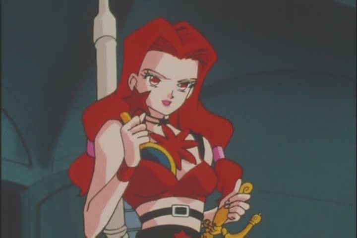 Eugeal, back from her sojourn from the pits of the cathedral, shoots fire from her Flame Buster thingy and swipes the Talismans. I hate this part. Felt rushed, uninteresting. The animators did the minimum amount of work to set up the subsequent chase sequence.