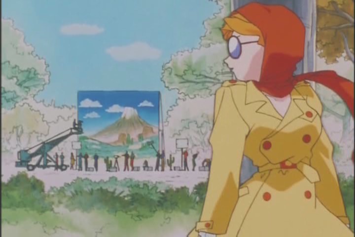 Minako is after famous person Yosaku Eda, who is apparently filming a movie down at the park. Because all filming is done on location, on an open set where the public can just sneak on. Yeah, makes sense.