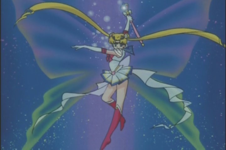Sailor Moon finally remembers that she’s Jesus, and whips out the Grail for her double transformation into Super Sailor Moon. This is still SO EXCITING. Even more so because we get a brand new attack!
