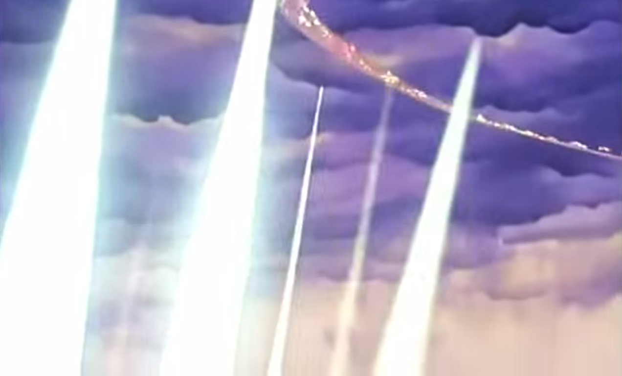 This is followed by an incredibly beautiful shot of Super Sailor Moon with rainbow butterfly wings (all iconography used in this season to denote the Messiah), leading a path of glittering butterflies as she brings pillars of light down through the clouds. It’s fantastic stuff.