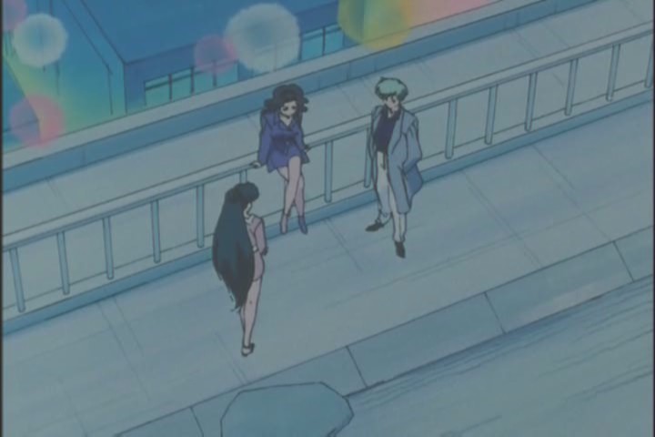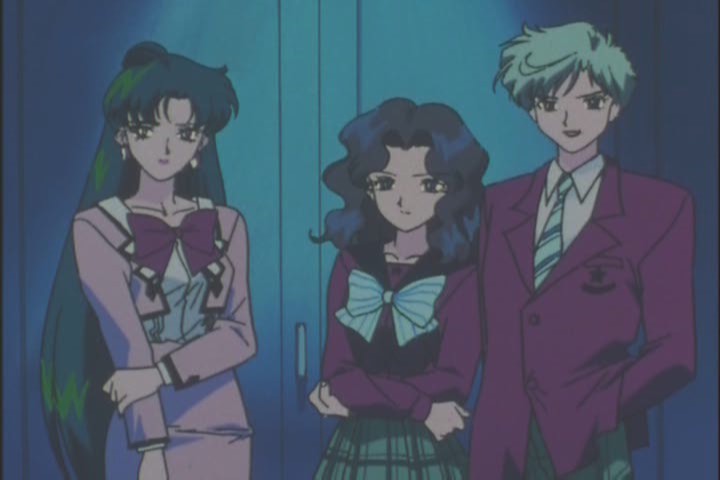 Haruka, Michiru and Setsuna are here, and identify Mimett at once. This is the only time that glasses and a headscarf have been unable to disguise an antagonist successfully in Sailor Moon.