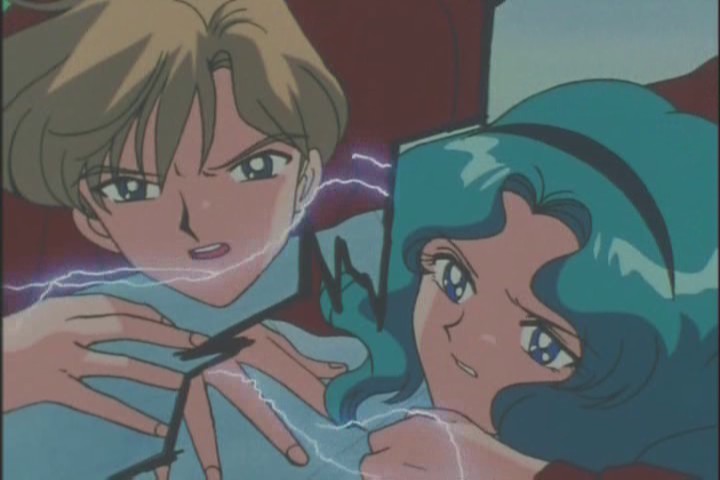 Except that Haruka and Michiru instantly run behind Ami so that she can take the hit while they run away. Nice ones, guys. I probably would have done the same to be honest.