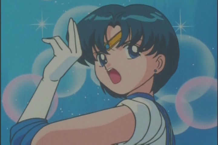 Byruit decides to do the smart thing and get rid of the incapacitated enemies first, directing her stupid uni-directional nano-bots to kill Haruka and Michiru, but as we all know robots are weak to ice (…what?), and Sailor Mercury defends the Outer Senshi from being turned into grey goo with a Shine Aqua Illusion.