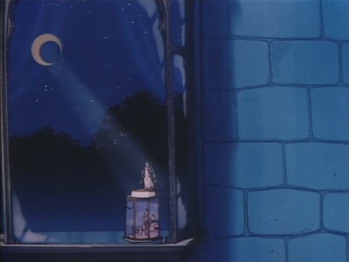 I also get the impression that this has been the cheapest ending to animate thus far. A small music box, some small, static images of the Senshi, a rather nice glittery moonlight effect at the end there… and that’s it.
