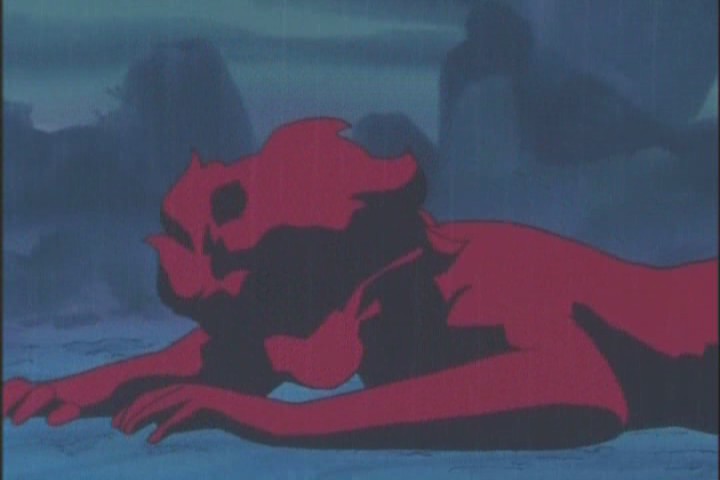It’s a bit heavy handed here with the thunder and lighting, but I like how corny, how hammy this all is. The Daimohn Oven is all that remains of the Death Busters is seems. Great ominous door swinging here…