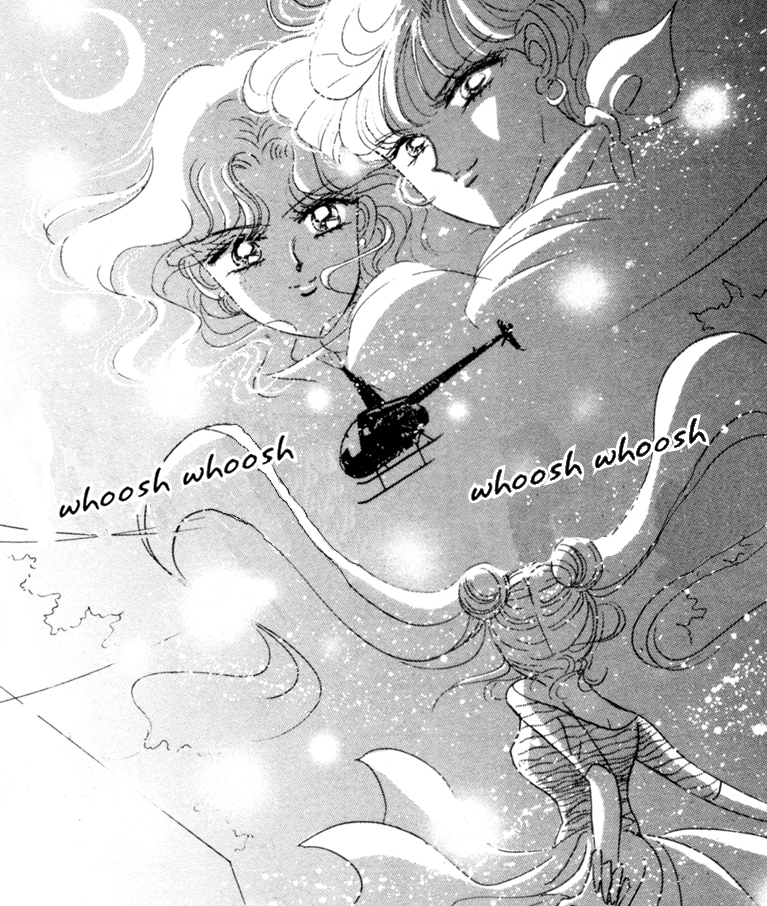 Haruka and Michiru offer Chibi-Usa a ride home in their fucking helicopter. *Slams head on desk*. Why. What. Why.
