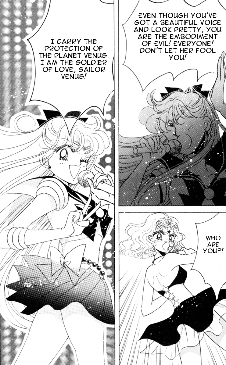 Minako sneaks into Mimi’s concert using her Sailor V compact to dress as a Mugen boy. I liked this. More gender-swapping, and what’s more is that we’ve never seen this in the Sailor Moon manga. She also acts super catty, precisely what the anime captured of her.