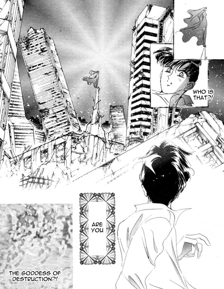 Mamoru has another vision. This time he sees the goddess of destruction, which is very cool. Beautifully drawn. In fact, this whole arc has seen an improvement on much of the art.