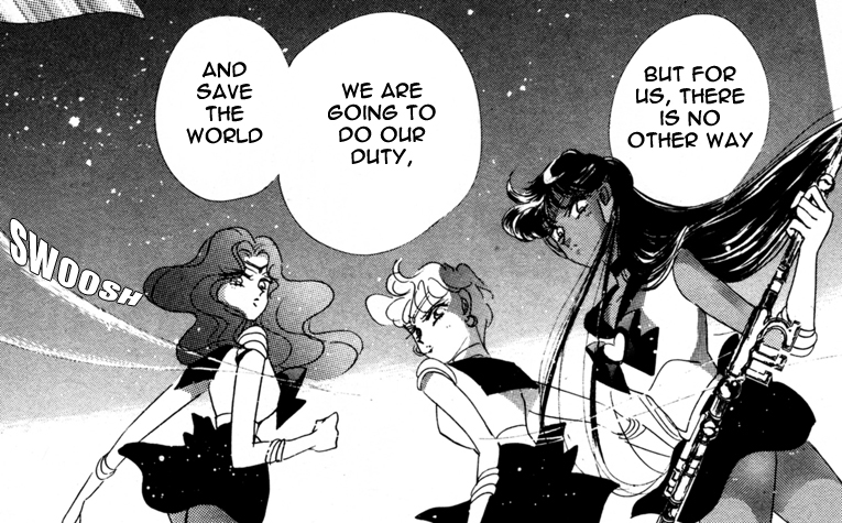 The Outer Senshi watched the fall of the Silver Millennium from afar. They were forbidden from leaving their designated “zones”. That’s right, it appears that Queen Serenity ordered these ladies to hang out in the empty void of space by themselves guarding nothing.