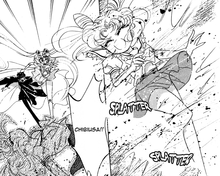 The scariest thing in the manga isn’t Mistress Nine, however… it’s the sight of Chibi-Usa lying lifeless in Tuxedo Kamen’s arms. “She’s not breathing” is a terrifyingly real way to end an act.
