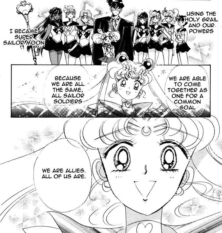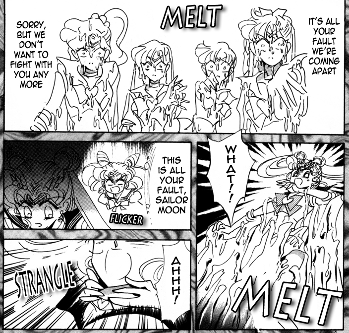 Cue 5 pages of Sailor Moon realising that she has to believe in her friends. This happens so often that it’s completely lost any impact.