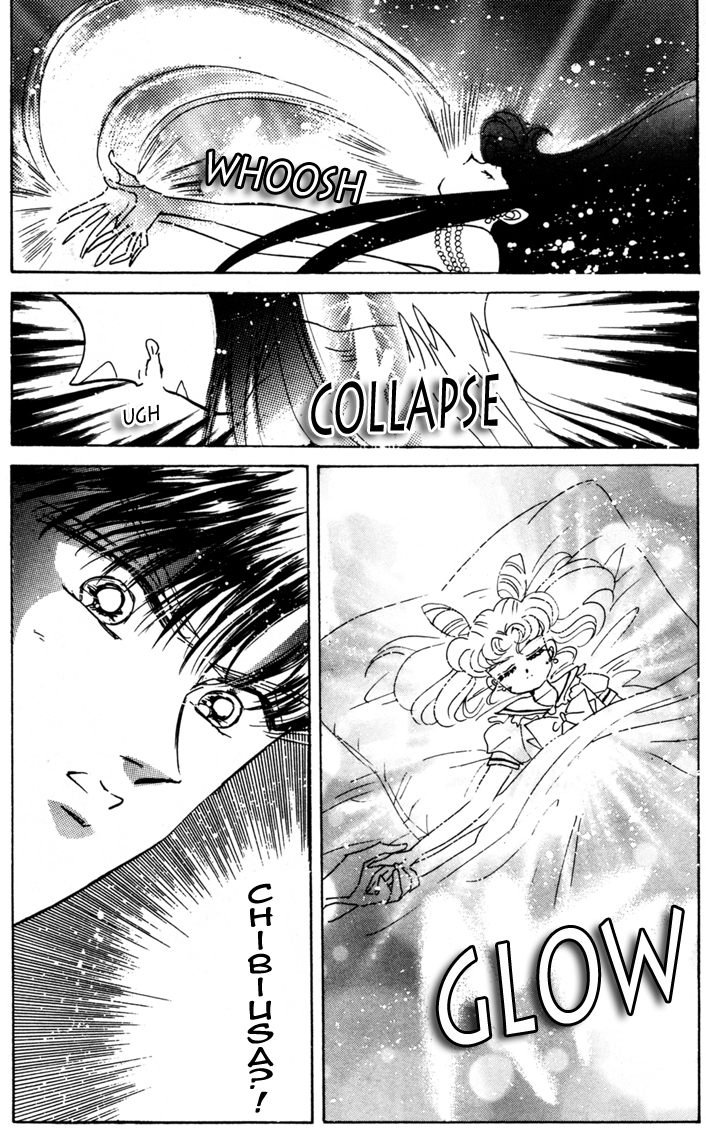 As Mistress Nine starts freaking out at the amount of power she’s taken in, Chibi-Usa’s body starts convulsing for some dramatic manga-ish reasons. The important thing to note is that Hotaru is actively fighting back against Mistress Nine consuming Chibi-Usa’s soul. These are decent… but don’t have nearly the same impact as the anime, which really made you feel as though she was consumed.