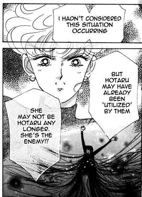 Sailor Moon and Sailor Chibi-Moon both realise that the Senshi of Destruction they’re talking about is Hotaru. They explain that they must kill her or risk awakening Saturn, and get pretty much the reaction you expect.