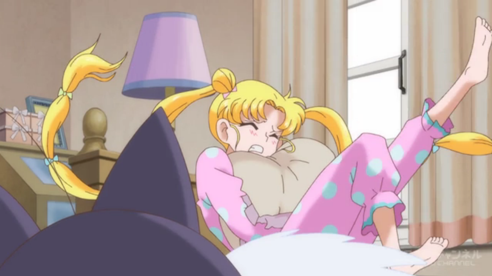 NOW. While this is, on the surface, related to the fact that she is far away from home, and lonely, it might also be interpreted later as a manifestation of the Jungian Electra Complex Chibi-Usa develops later in the Black Moon arc of the manga.