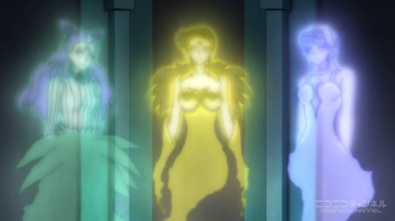 Heeey it’s the Four Kings. Massively disappointing in the Dark Kingdom arc in the end, but it’s nostalgic to see them again. They don’t serve much purpose, except to show that Mamoru has aura powers enough to consult his dead hencemen. Note he doesn’t tell the other Senshi, who actually apparently had relationships with them in a previous life). They’re his cheerleaders, telling him, hey buddy, you’re not so useless. They also give the vague “dark shit’s on its way, son” talk. Nothing useful naturally, but I loved this.