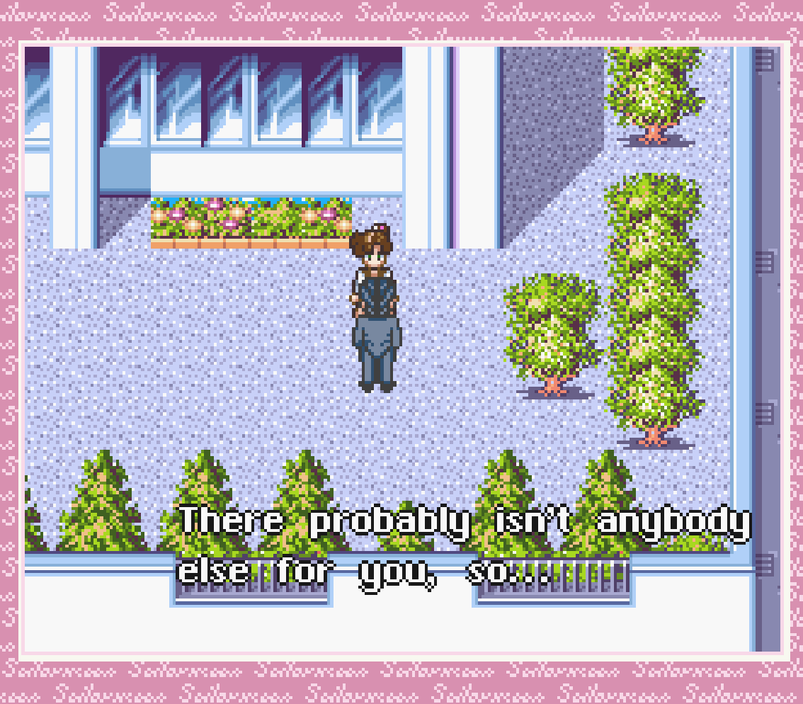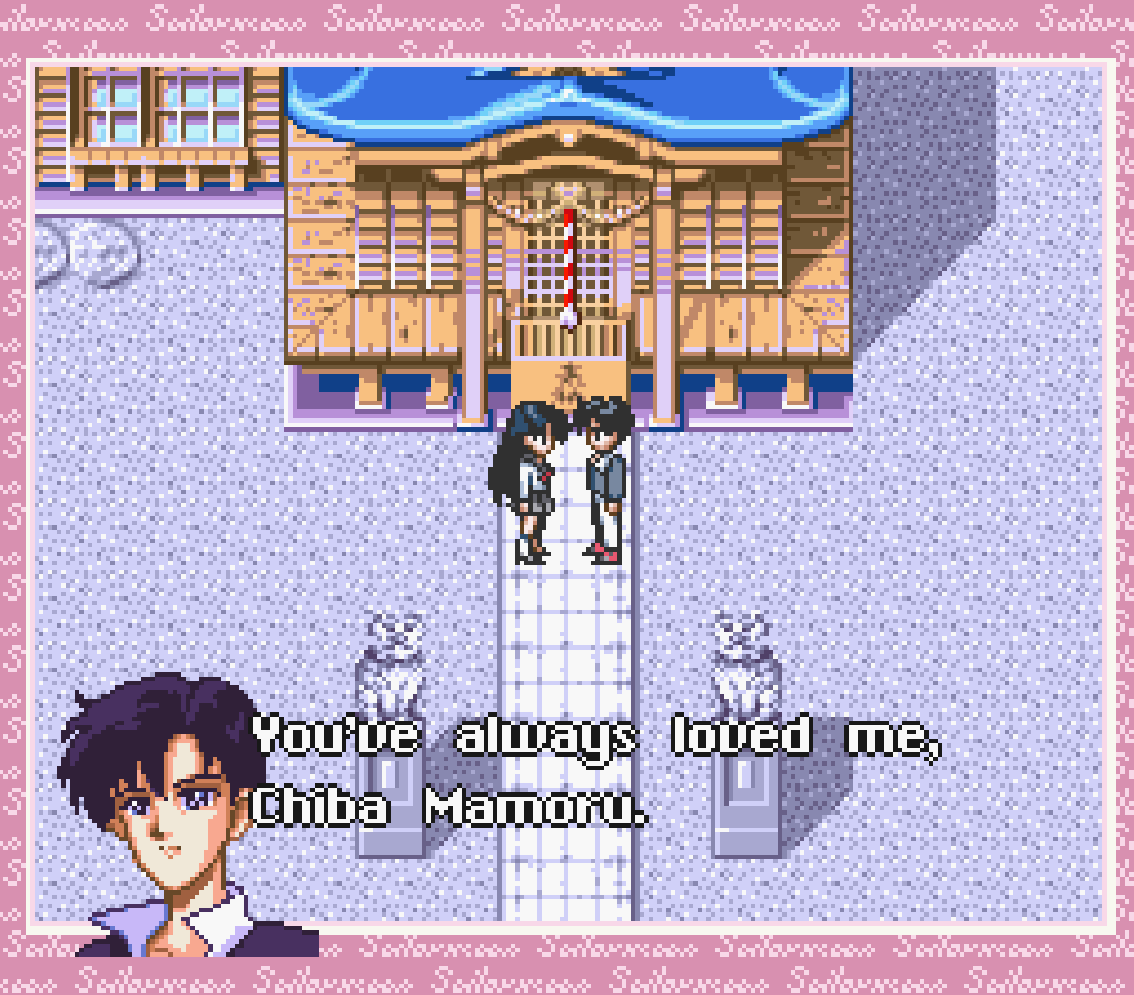 And HEY WOAH Hotaru is, like, older!? As soon as you realise that Hotaru won’t be a little baby in this game, after the events of Sailor Moon S, you are all in. You get to play Sailor Saturn, the destructor? That’s SO COOL. And this makes sense, too! The power to alter fate is so open ended and all-powerful that ageing baby Hotaru back into Sailor Saturn’s age fits nicely. She’s obviously weakened too, and her personality is much more like Hotaru than the cold efficient Sailor Saturn, which is also a good choice for her character.