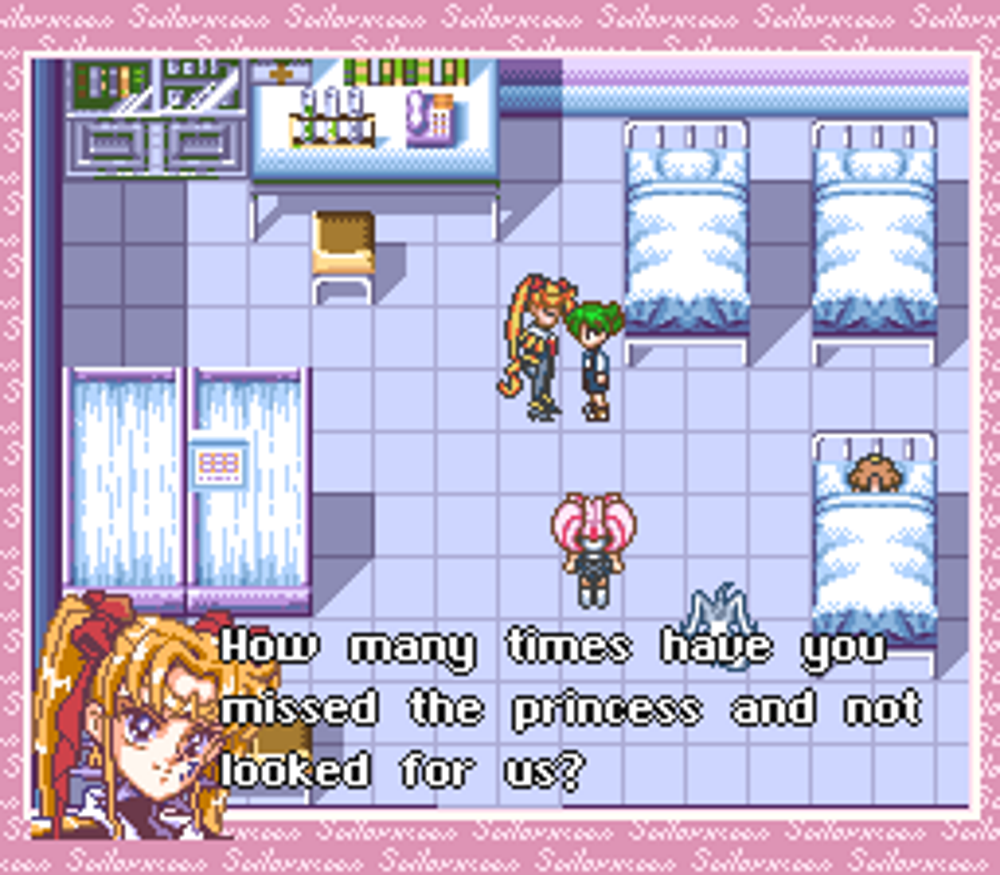 In a poor design feature, the game sees you getting back to Usagi’s house, resting for a bit, then seeing the two decide to return to the labs to see if they can find any evidence of where Chibi-Usa went. Well why did you make me walk all the way back!? Jesus, sometimes this game wants me to hate it.