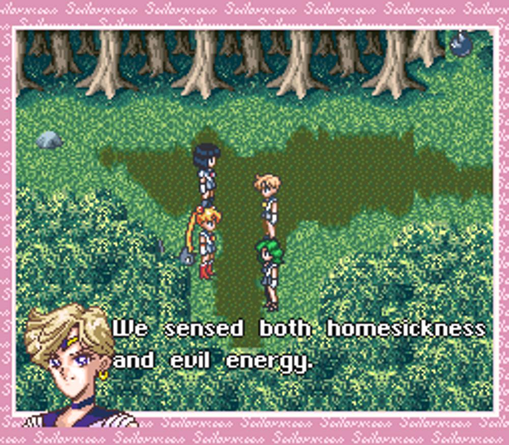 There’s not a whole lot in this forest, which I can only presume is in some kind of alternate dimension or something. It’s really vague, and I’m not sure to blame the game or the translation. Guessing it’s the game. We eventually met Chibi-Usa and add Sailor Chibi-Moon to the team, so we’re now a full party again! Yaay! It’s been sodding aaaaages.